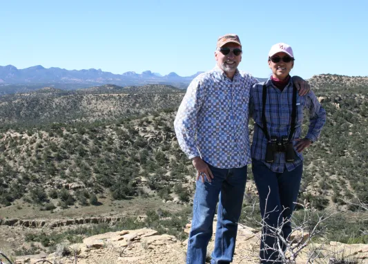 In 2009, John and A-Lan Reynolds stumbled upon the wild beauty of Catron County, New Mexico while on a road trip to the Four Corners area with their daughter and son-in-law. John (1) saw exceptional night skies for astronomy. A-Lan (2) saw unspoiled, endless expanses of America as it might have looked before there were people. They began stitching together parcels of this beautiful land, immediately roping their close friend Howard “Pip” Pope (3) into their quest to explore every corner of their rapidly growing piece of heaven.